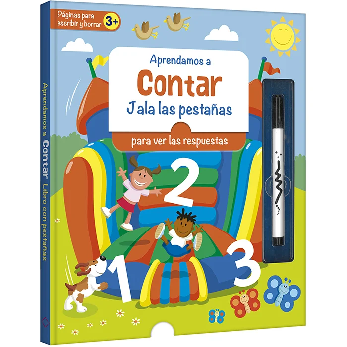¡Aprende a contar de forma fácil y divertida! Utiliza el marcador borrable para escribir las respuestas, luego jala las pestañas y comprueba si lo hiciste bien. Fomenta la confianza en el aprendizaje en niños desde los 3 años en adelante.