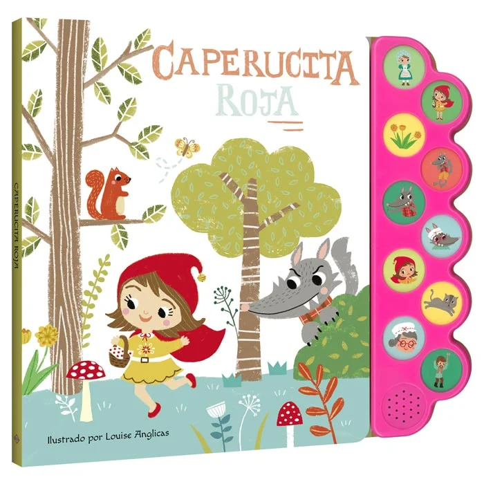 Escucha la historia de Caperucita Roja. Ella es una niña que fue a visitar a su abuelita. El lobo intenta comérsela en casa de su abuela, pero ella es salvada. Disfruta los relatos al presionar los botones.